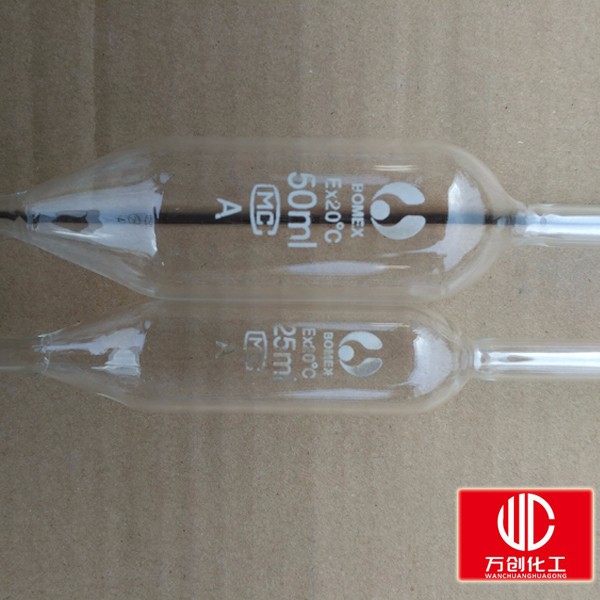大肚移液管移液管是用來準(zhǔn)確移取一定體積的溶液的量器,只用來測(cè)量它所放出溶液的體積。它是一根中間有一膨大部分的細(xì)長玻璃管。其下端為尖嘴狀,上端管頸處刻有一條標(biāo)線,是所移取的準(zhǔn)確體積的標(biāo)志。常用規(guī)格:1ml2ml5ml10ml25ml 50ml